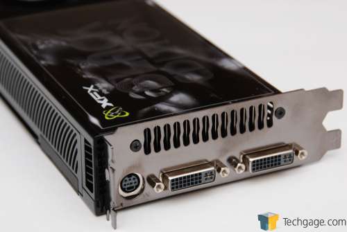 XFX’s card follows the reference design to a T, with a bulky, yet capable cooler that truly helps make the card feel like a tank. Included on XFX’s model are two DVI ports along with a TV-Out. For those looking to use other connections, the company also includes a DVI-to-VGA adapter and also a similar adapter for HDMI. Since the card utilizes HDCP, you’ll have no problem enjoy your high-definition content with this GPU.