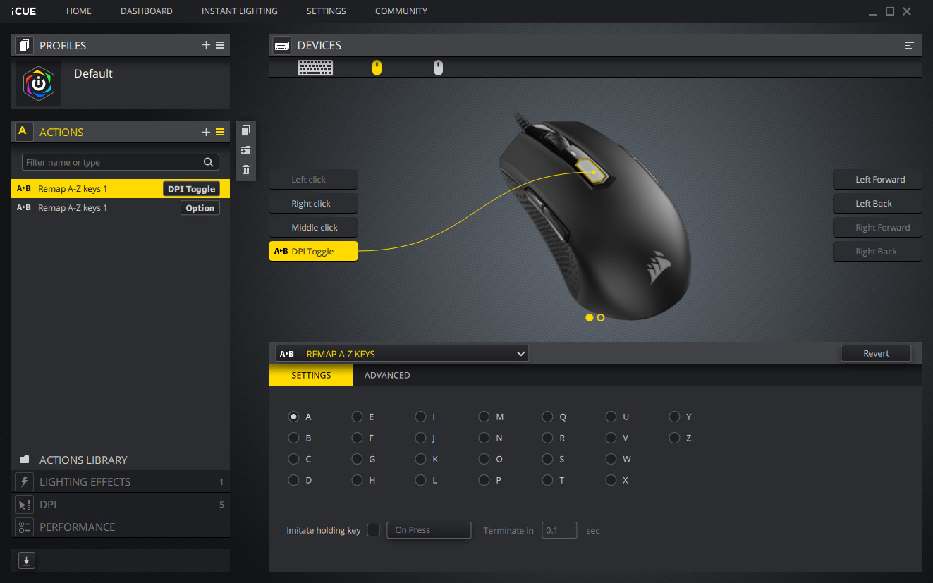 Like the NIGHTSWORD and the rest of Corsair’s current portfolio, the M55 can be adjusted many different ways in the iCUE software. That extends as far as allowing you to remap one of the buttons to help switch profiles quickly. You could even do that with the DPI button if you never care about manipulating it during gameplay.