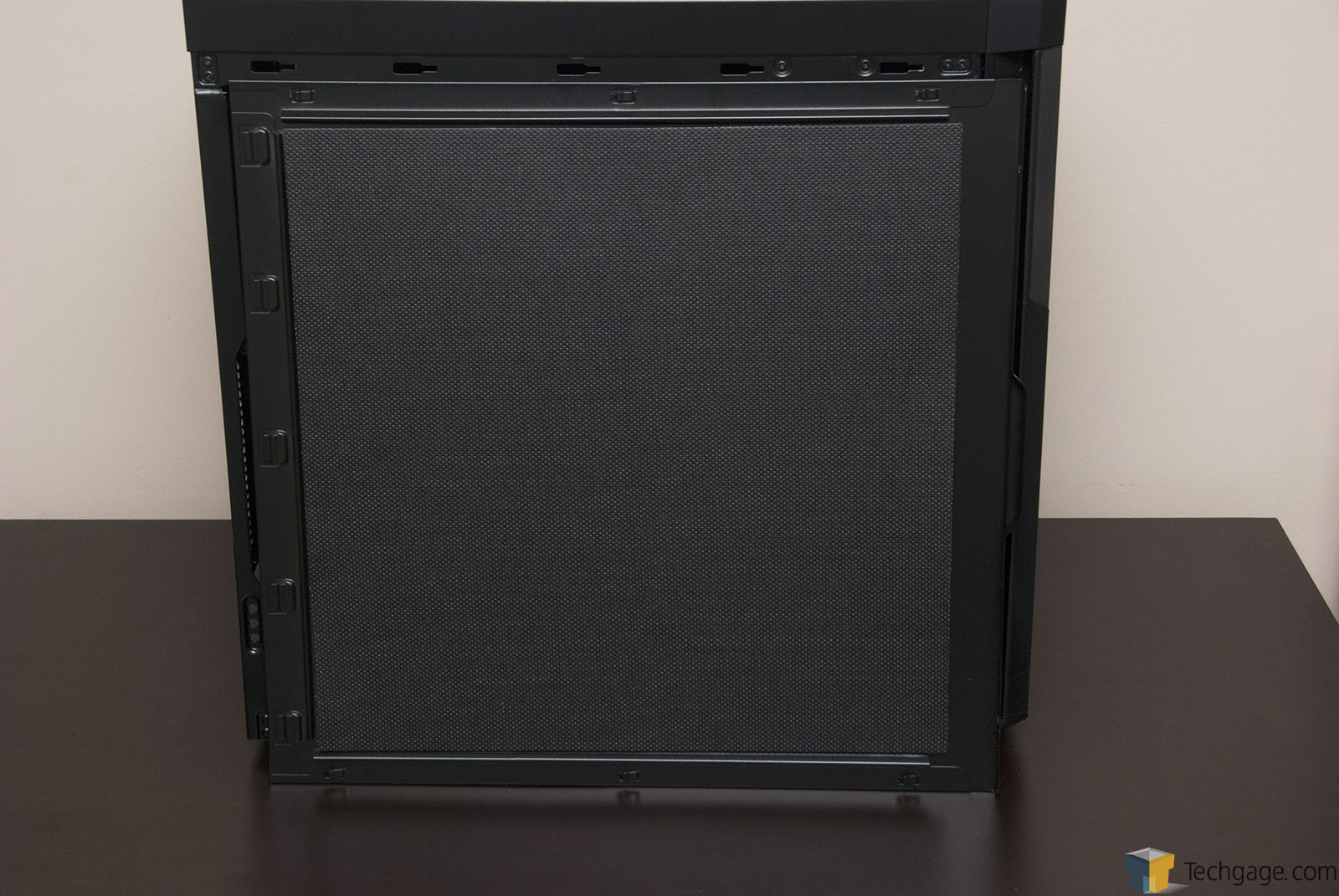 What really made me love the 330R is the fact that it’s kitted out to the nines with sound dampening material. Both sides of the chassis are lined with it, and so is a top removable piece. There’s even sound dampening behind the door at the front. What’s this all mean? It means that when the PC is turned on, you’d be hard-pressed to even hear it. Yet again, this was another thing that led my sister to some confusion: it’s a weird sensation to turn a PC on and simply not hear it. At one point I ended up turning it off because I didn’t realize it was on (it was the monitor that was off).
