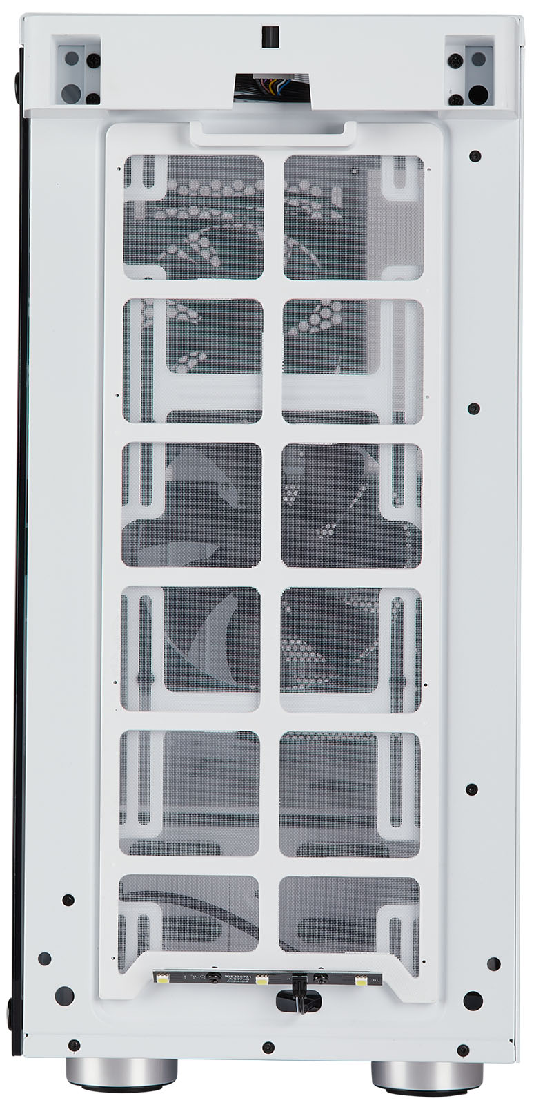 For liquid cooling, a 360mm radiator can be installed at the front, or at the top, a 240mm can be mounted. Overall, you can fit a total of 6x 120mm fans in the 275R, and as has become standard with Corsair, cable-routing features will help keep the inside of your chassis free of hanging cables.