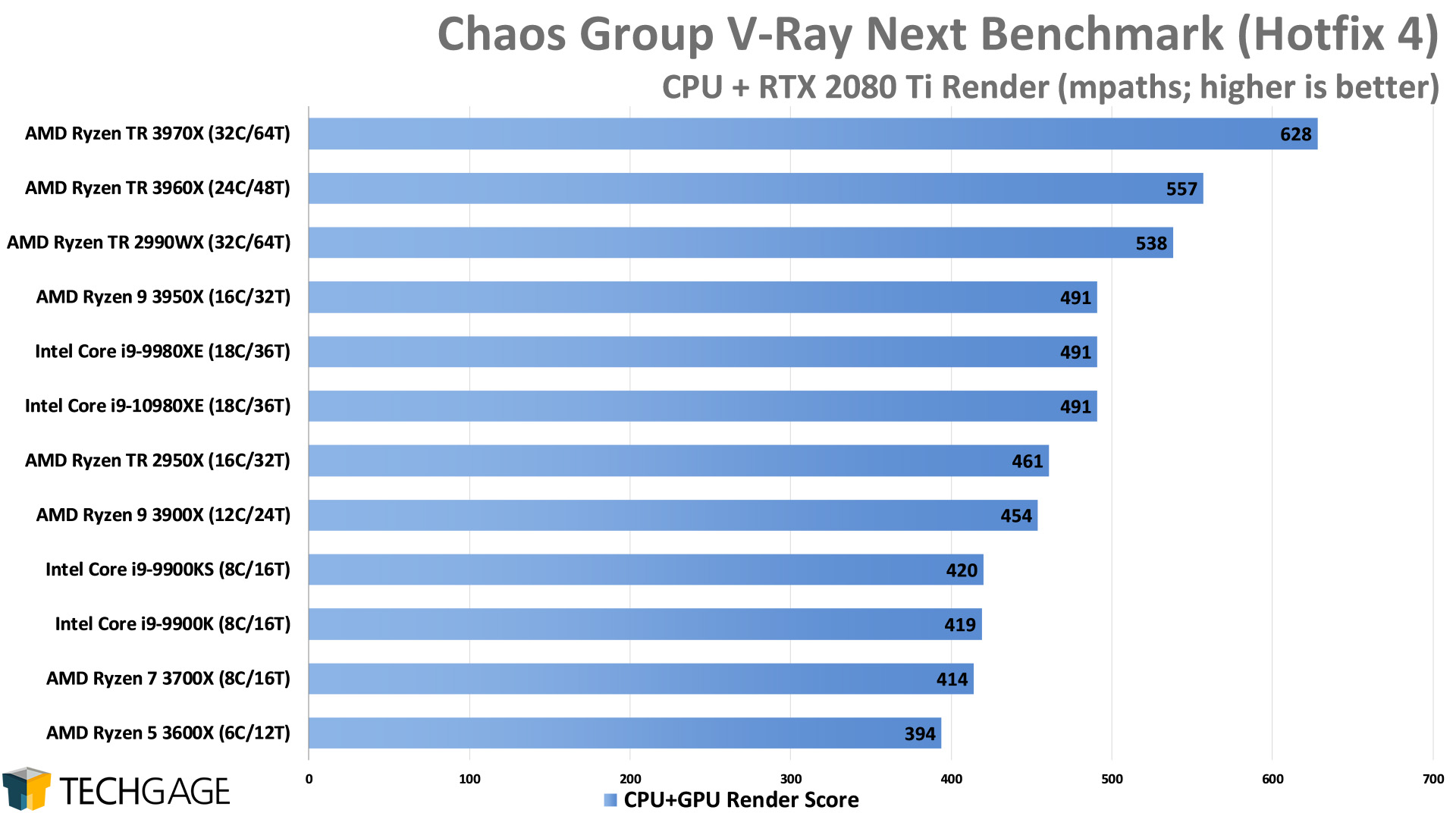 Chaos Group V-Ray Next Benchmark - CPU GPU Render Score (AMD Ryzen Threadripper 3970X
